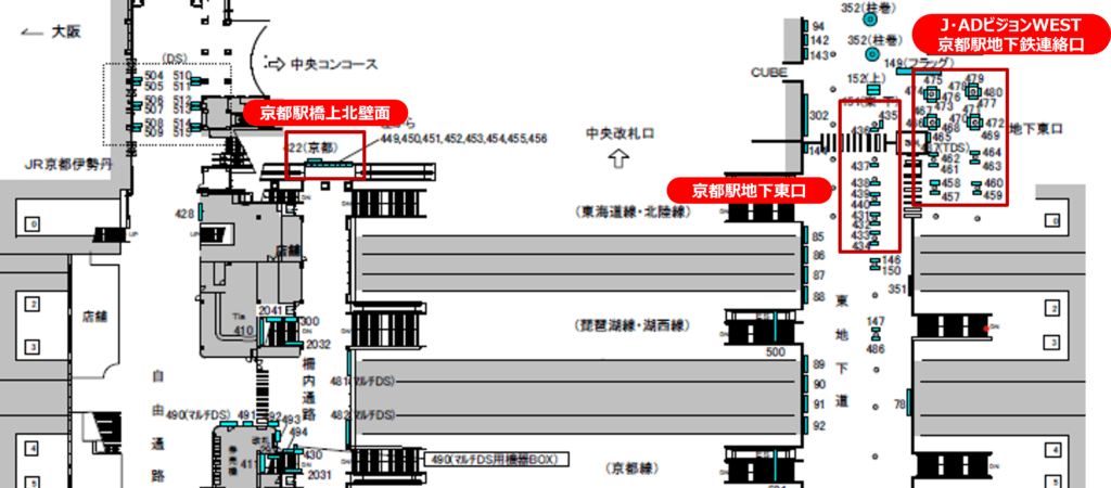 京都駅の主要改札口を網羅し、京都駅の多くの利用者に訴求が可能です。
