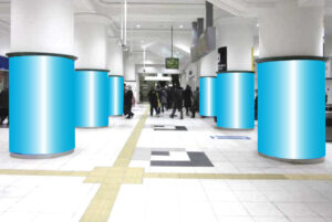 ■京都駅:京都市営地下鉄烏丸線改札と、京都地下の大型商業施設の導線上の好立地に掲出される、柱巻きの大型広告です。■大阪駅:阪急百貨店とJR大阪駅を結ぶ、待ち時間が表示された横断歩道に面する人通りの多い場所に掲出される電照式の媒体です。■三ノ宮駅:中央コンコースとほぼ同じ人の流れがある東口改札正面柱に設置します。