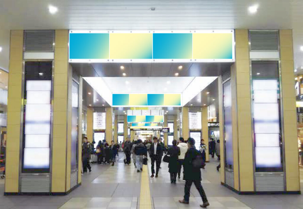 天王寺駅中央コンコースの内照式の梁を利用した大型媒体で、視認性も良く迫力のある広告展開が可能です。
