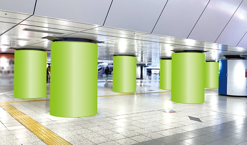 ■駅構内の柱を、広告面として360度活用できるユニークな商品です。■柱の形を効果的に活用することで、商品の形を演出したりとユニークな展開が可能です。※掲出撤去作業が夜間となっております。