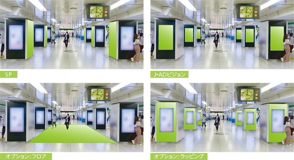 ■J・ADビジョン18面とシート広告6面をセットにして注目度をアップした媒体です。■池袋駅の中でも流動の多い中央通路に面し、中央北・中央南の改札口に正対しているため、改札内外で強力に訴求できます。