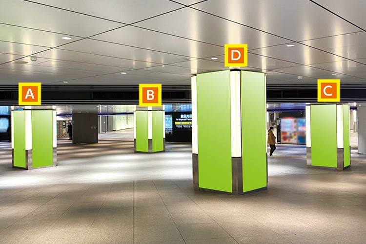 ■東京・丸の内の地下コンコースにおいて特に通行量の多い、丸の内南の柱シートをセットにした媒体です。■4ヶ所の柱を連動的に活かした効果的な訴求が可能です。